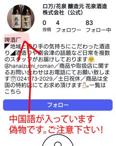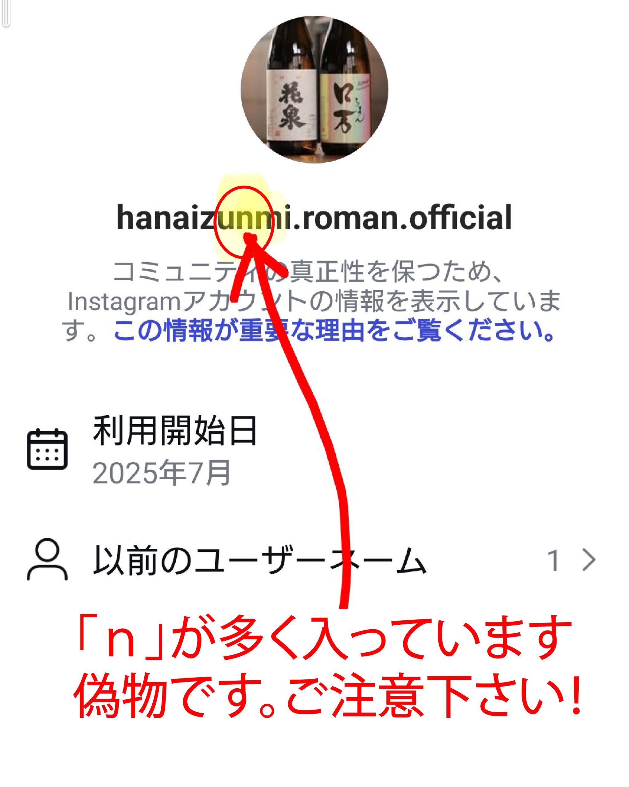 このたび花泉酒造の公式Instagramを装った偽アカウントの存在が確認されました。